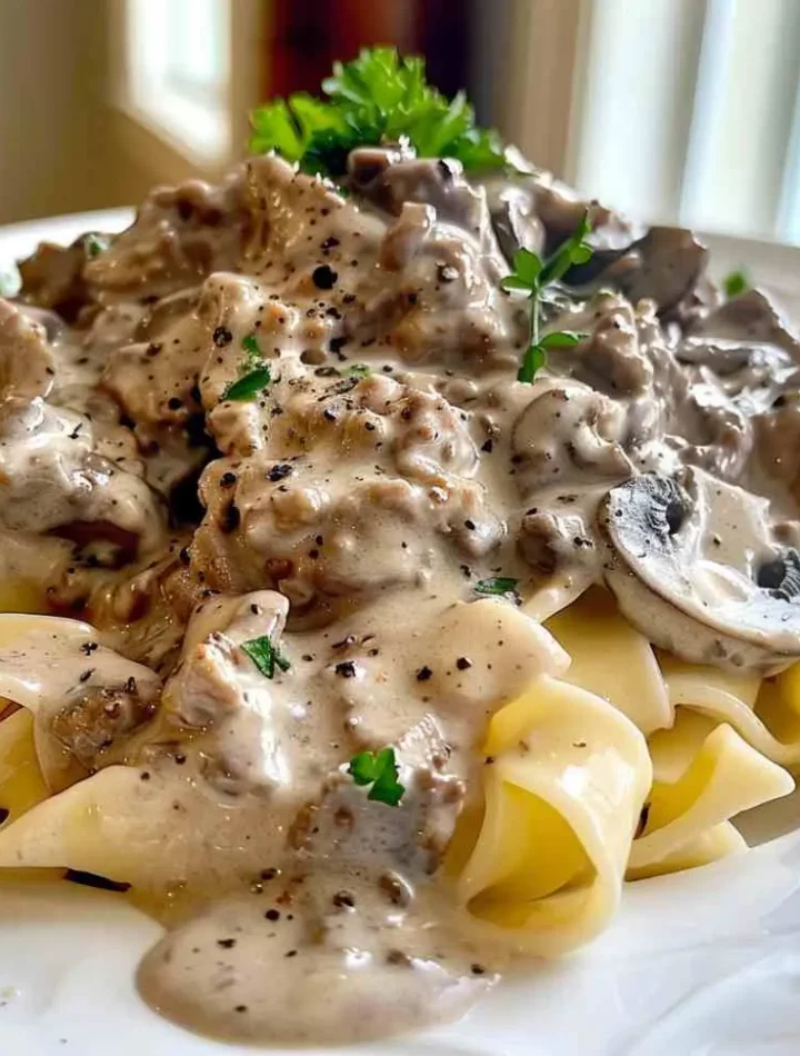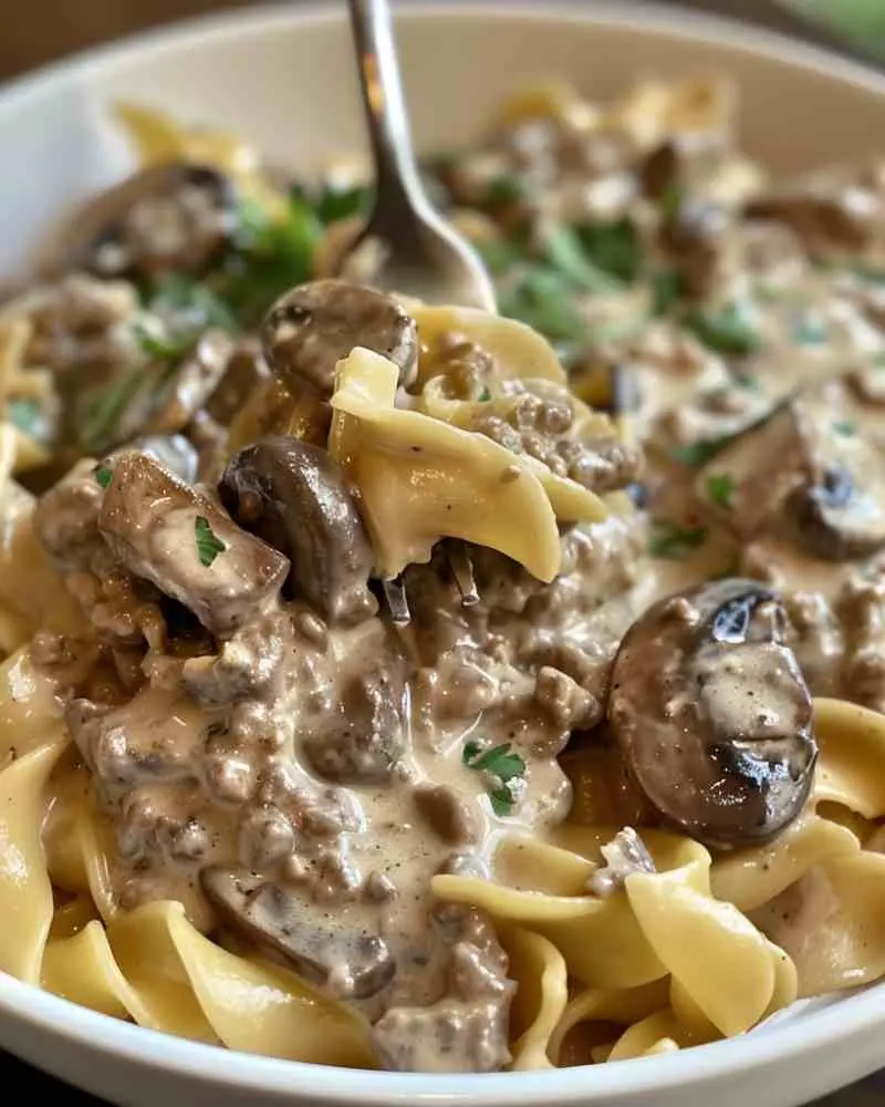 Tender bites of ground beef wrapped in a silky, savory mushroom sauce, coated over warm noodles—it’s rich, creamy, and deeply comforting. In just 30 minutes, you get a hearty, satisfying dinner that feels like it’s been simmering all afternoon.
