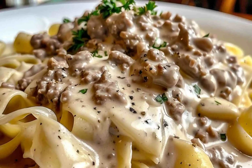 That creamy, savory sauce coating every strand of pasta… the rich, beefy flavor balanced with a gentle tang… the warmth that fills your kitchen in under 30 minutes. This is the kind of meal that turns an ordinary evening into something cozy and satisfying.